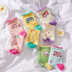 Catch Tiniping Kids Non-Slip Socks 5pcs Set 새콤달콤 캐치티니핑 아동용 미끄럼방지 발목 양말 5족 세트