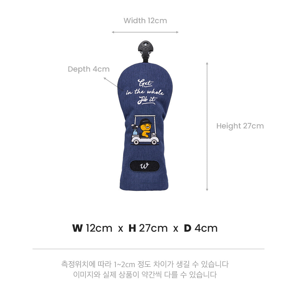 Introducing the Official Kakao Friends Golf Headcover: the Urban Solid Wood Cover featuring Ryan! Ryan will be your cheering companion on the field, with his stylish golfwear embroidered on the cover. Crafted with a combination of fabric and leather on the outside and soft faux feather boa on the inside, it offers impeccable protection for your wood clubs. With its secure fit, you can trust that your favorite cover won't easily fall off during play. Compatible with woods of various sizes, this cover ensures a snug and comfortable fit for your wood. Additionally, the attached Velcro strip featuring the letter "W" allows you to keep your gloves and other accessories securely within reach. Elevate your golf game with Kakao Friends Golf!